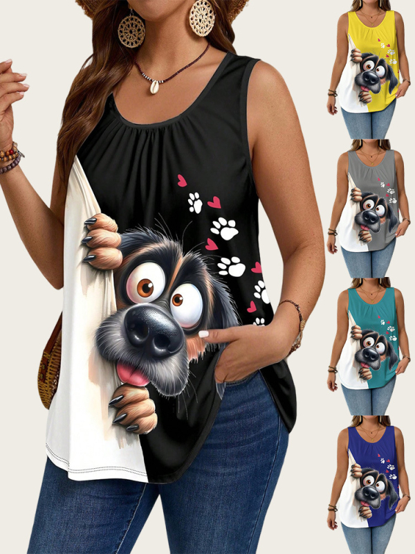 Állatmintás ujjatlan póló, 95% poliészter, digitális nyomtatás, bő szabás, U-nyak