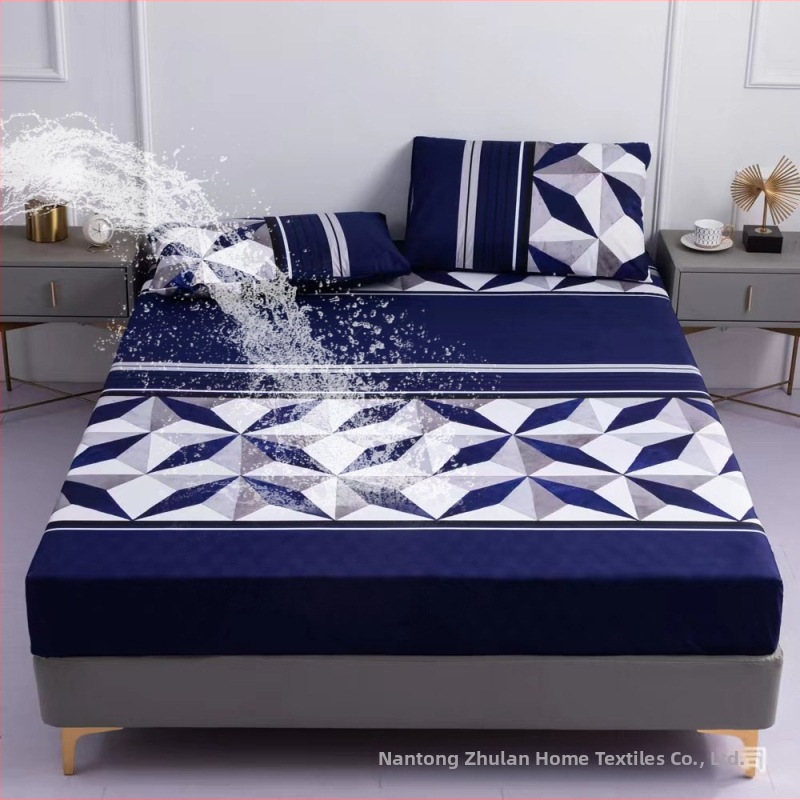 Egyrészes matracvédő, vízálló és vizeletbiztos, egyrészes dizájn, anyag: kémiai rost, szövés: sima szövés, reaktív nyomtatás és festés, tömeg 800–1000 g, minden évszakban használható