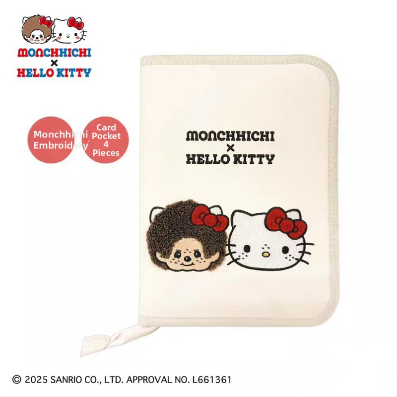 Japán stílusú Monchhichi Kitty plüss tervező notesz útlevél-tartóval és utazási jegy szervezővel (PU anyag, poliészter bélés, közepes keménység, belső rekesz, 2025 ősz)
