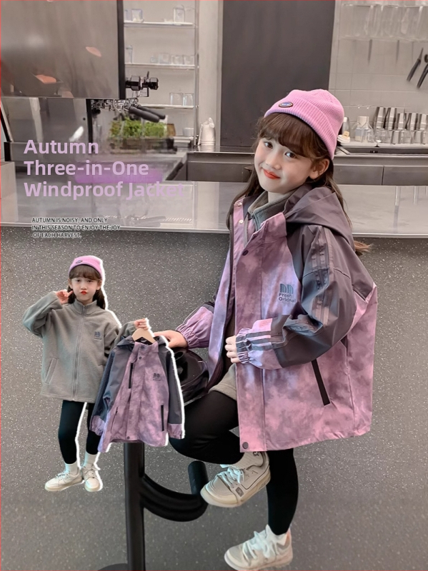Lányoknak szóló 3 az 1-ben kabát koreai stílusban, terepmintás, vastagított, cipzáras záródású, poliészter bélés