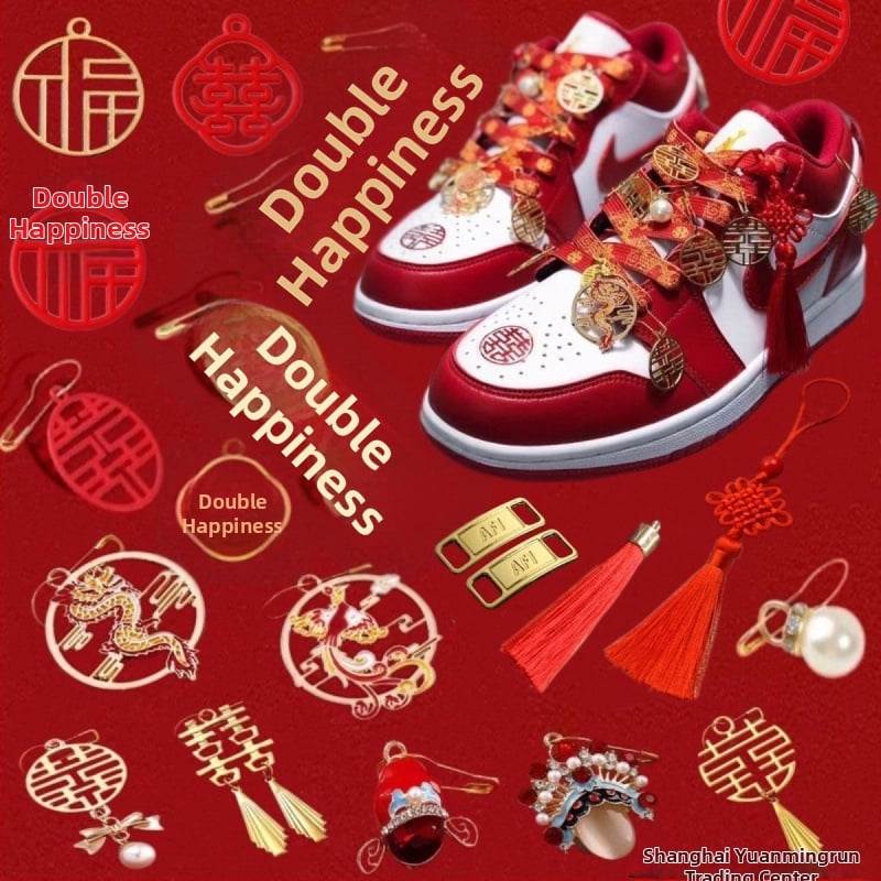 Menyasszonyi cipő kiegészítő leválasztható dekoratív medállal és dupla boldogság motívummal, textile cipőkhöz; fűzőhossz 80–160 cm; tavaszi viselet