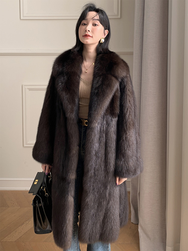 Női műszőrme kabát, orosz sable csillagos mintával, hosszított fazon, hosszú ujjak, gallér típus zakó