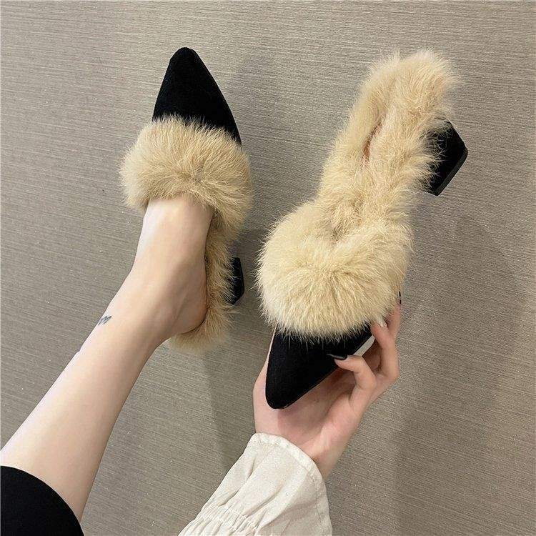 Női szőrös slip-on cipő, felsőrész: műszőr, bélés: gyapjú, talp: összetett, talp vastagsága 0-3 cm
