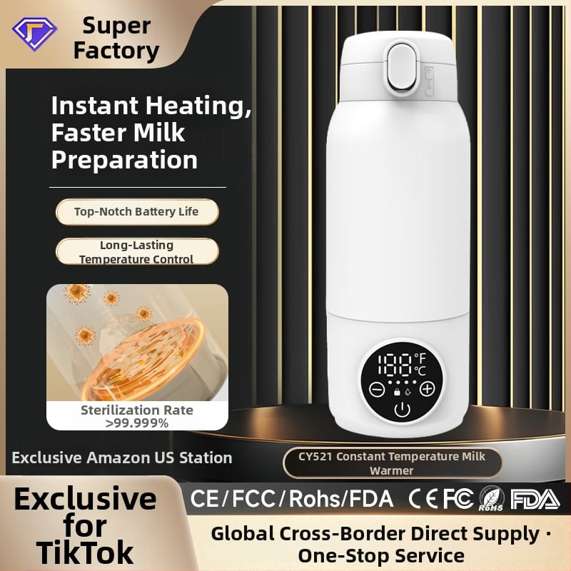 Vezeték nélküli termosztatikus bébi tejmelegítő pohár, 500 ml, USB töltés, rozsdamentes acél, kijelző